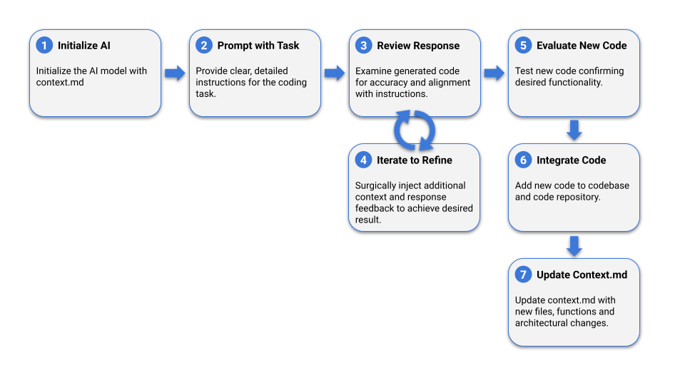 Every time you start a new AI chat for your project, your very first action is to paste the entire contents of your context.md file into the prompt. Below is a suggested initial prompt: